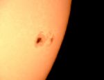 デジカメって太陽を撮影出来るのだろうか?疑問があれば、とりあえずやってみる。てなわけで、会社の昼休みを利用して太陽撮影を強行しました。太陽はとても危険な天体です。一つ手順を間違えば失明してしまいます。時間が無いからと言って慌ててはいけません。サブスコープを外す。太陽フィルターのチェック。そして取り付け。影を利用して導入。ピント確認。デジカメ取り付け。そして撮影。こっ!これは!素晴らしいじゃないですか。デジカメ恐るべしです。 |