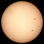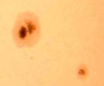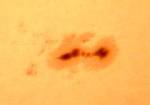 | デジカメで太陽を撮影 確立 デジカメ太陽シリーズです。天気は下り坂なのですが、雲間に太陽があったので今日も撮影です。昨日の成功がマグレだといけないので。昨日と同じ手順で撮影開始。今日は、強拡大にも挑戦です。結果は右の通り。ここに、デジカメ太陽撮影法の確立です。 デジカメ太陽撮影法 秘伝書?(このリンクに気付いた人は得をする?) |