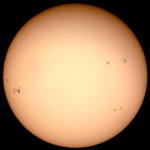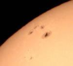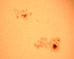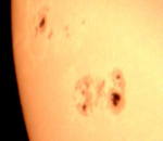 | デジカメ太陽シリーズ 巨大黒点を追え4 今日は、(今日も)昼休みに太陽観察です。いつも通りに撮影を開始しましたが、どうも拡大撮影時にピントが出ません。もっているデジカメがオートフォーカスなので、やはりゴミ等に反応するみたいですね。結局拡大撮影の写真は全滅でした。ただ、今回2倍テレコンバータを入れた拡大にもチャレンジしてみました。眼視レベルではピントも出ているので、後はデジカメの問題ですね。夕方、そんな私の心を知ってか知らずか電気屋さんから電話がありまして、「COOLPIX990一台だけ入荷したよ!」悪魔の誘いです。ポイントも溜まっていたし、入選金も溜まっていたので、COOLPIX900を中古で売れば、痛くない出費ですが、ハッキリ言って衝動買いです。でも買ってビックリ、60秒のバルブがあるではありませんか!さっそく、夜の公園に向けて(決して怪しくありません!)20秒程露光をかけました。ん!やはりノイズが多いですね。でも、レンズキャップをしてシャッターを切ればダークフレームも撮影出来たので、なんとか天文用にも使えるかな?太陽はまだ撮影していません。 COOLPIX990(約20秒露光 一部トリミング) COOLPIX990(ダーク演算後 一部トリミング) |