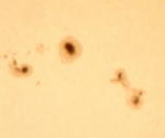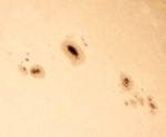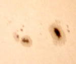 我が星くらぶM57のリーダーS方氏と太陽撮影会です。FC76を使用し、デジカメや銀塩で撮影しました。ここ数日、黒点が急に増えました。太陽病患者と致しましては、嬉しい限りです。 |