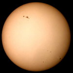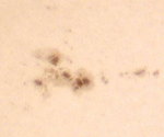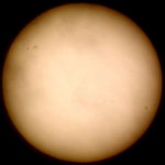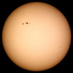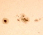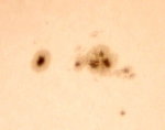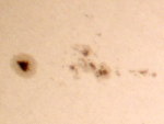 | デジカメ太陽シリーズ 巨大黒点を追え15 12cm屈折用のフィルターをお借り出来たのでテスト撮影です。12cm用でお借り出来たのは眼視用の1/100000です。やはり写真用には不向きかな?高速シャッターが切れませんでした。 |