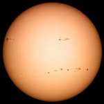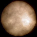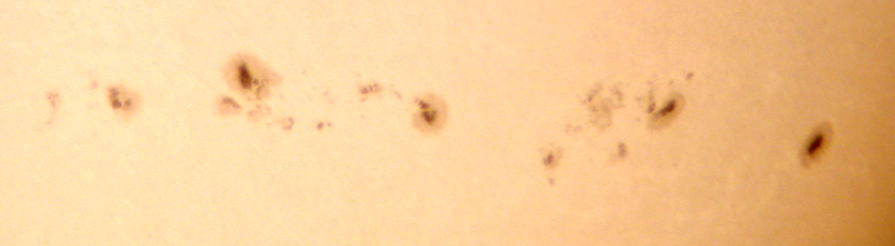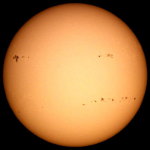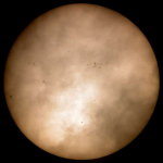| デジカメ太陽シリーズ 巨大黒点を追え40 今日も、うす曇。全景写真のみです。せっかくの黒点群が。 |