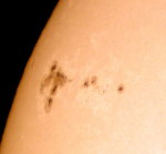 | デジカメ太陽シリーズ 巨大黒点を追え39 うす雲がかかっていたので全景写真だけ撮影しました。昨日確認した巨大黒点群の拡大撮影がしたかった。 |