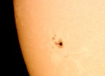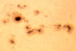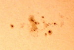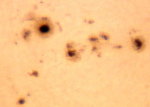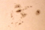 今日は、昨日以上に朝から曇り。こりゃ撮影無理かな?でも昼休みが近付くにつれ、雲が減り、晴れ間が覗いてきました。駄目元で撮影準備を開始。丁度セッティングが終了する頃に、雲から太陽が顔を覗かせたので撮影開始。全景写真。拡大撮影とこなしました。今日も結構シーイングが良かったのですが、まさか晴れると思ってなかったので、スタートが遅かったのでここで終了。でも、朝からの天気を考えたら撮影出来ただけで儲け物。 |