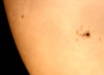 | 昨日に引き続き、黒点の数が多い状態が続いています。それにしても,今年はやはり紫外線に注意ですね。昨日、2時間プールに行っただけで、背中がヒリヒリだ。 |