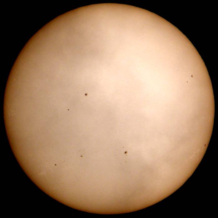 | デジカメ太陽シリーズ 巨大黒点を追え52 晴れだが、太陽面をよく雲が通過する。ゆっくりと撮影している時間が無い。全景写真だけ撮っておこう。 |
