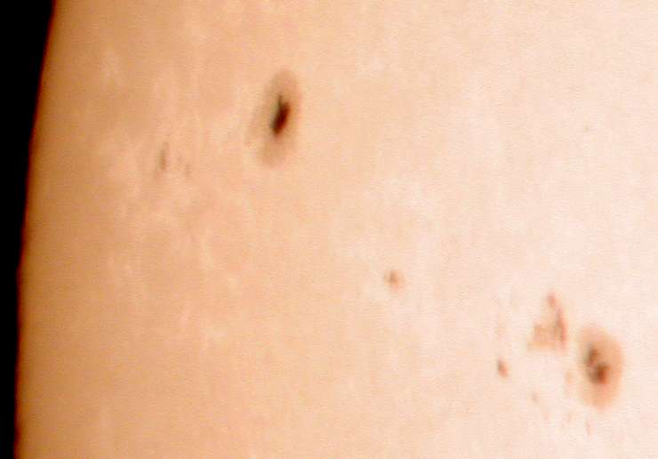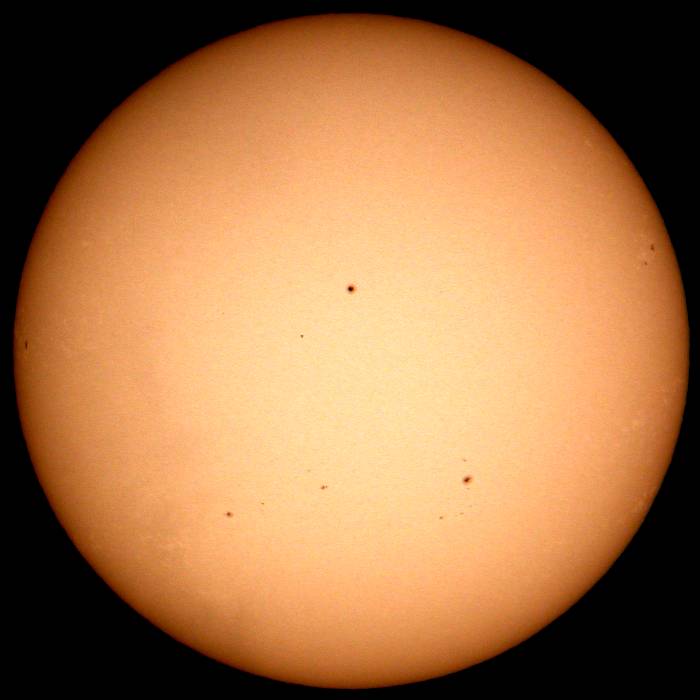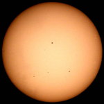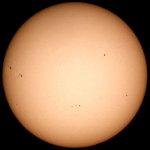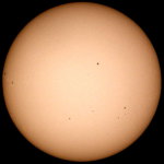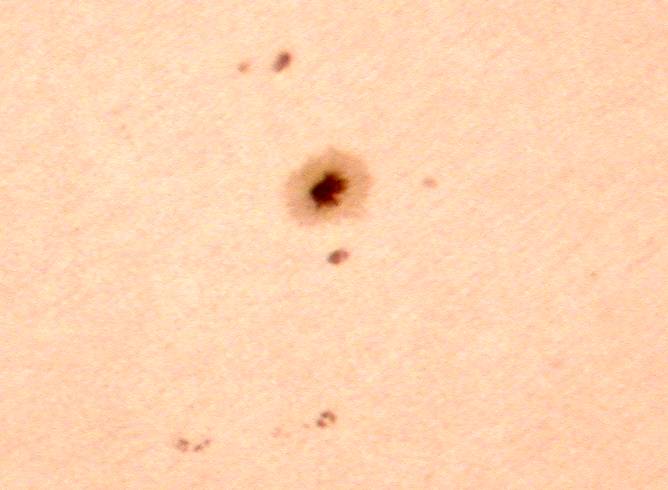 | デジカメ太陽シリーズ 巨大黒点を追え53 やっと天気が安定してきたが、太陽面は寂しい限りだ。活動面が裏面なのか全体が不活発なのか判断しかねる。この状態が半月続けば、結論が出るのだが。 |