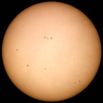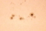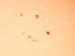 | デジカメ太陽シリーズ 巨大黒点を追え65 うす雲が、通過する間を縫っての撮影です。シーイングは相変わらずです。全景写真ですら揺らいでしまいます。 |