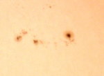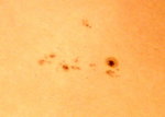 | デジカメ太陽シリーズ 巨大黒点を追え64 今日もシーイングが最悪です。しかし、拡大撮影の時、一瞬揺れが止まったのでワンカット良い?写真が撮影出来ました。 |