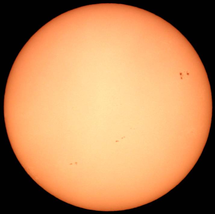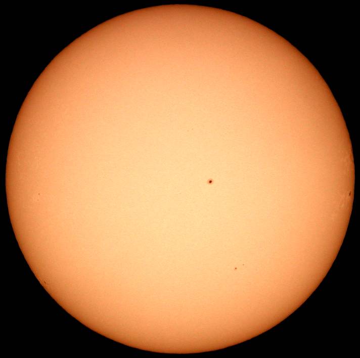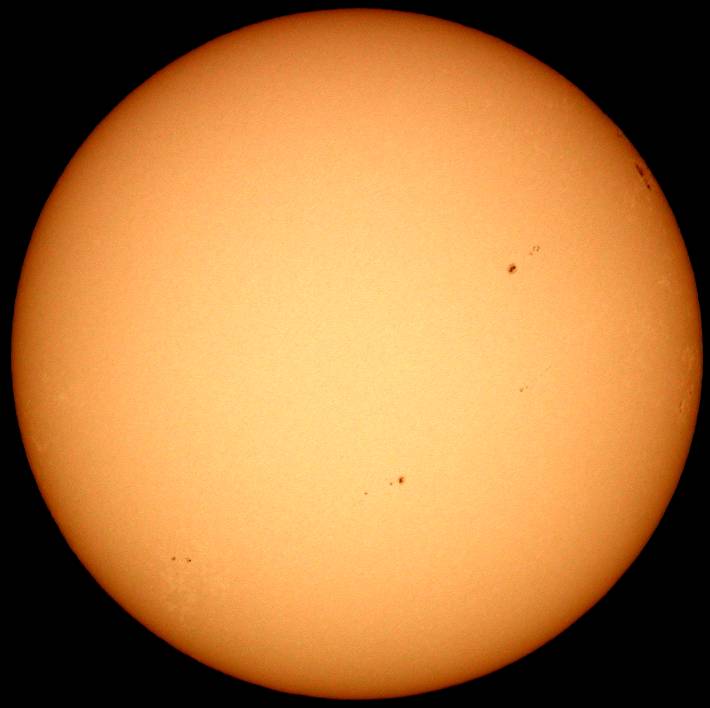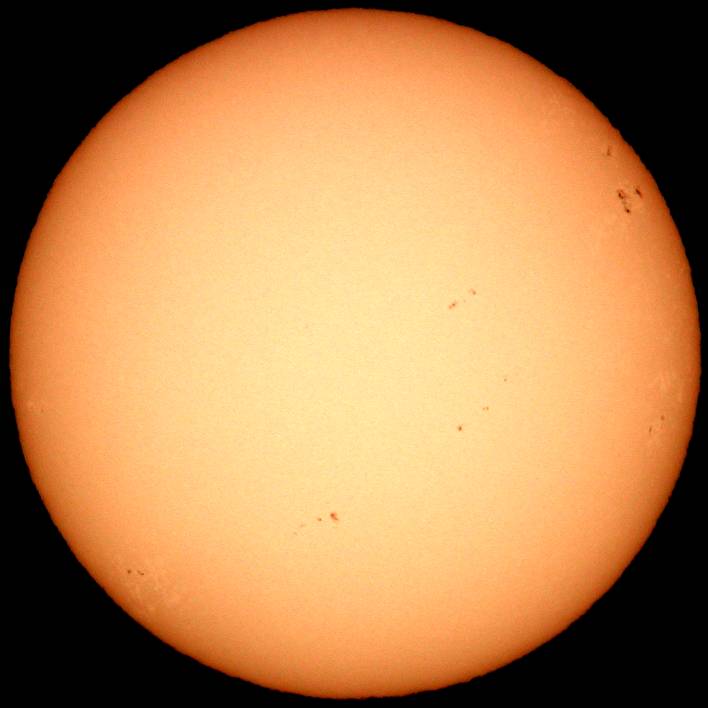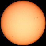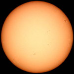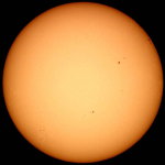 | デジカメ太陽シリーズ 巨大黒点を追え100 祝100回! 本日の太陽も可視光では、目立った変化はありません。先日回ってきた群も、今のところ静寂です。サングラフの指数も右下がり。ただ、先月は、もっと低いレベルから活発な活動を起こしたので、ある意味今月も期待しています。ここ数日中に、前回の肉眼黒点も回ってきます。はたして、残っているだろうか? このシリーズも100回。もう少し、太陽の事を詳しく解説したいので、現在、情報収集中です。新しい撮影システムも模索中。こうご期待下さい。 |