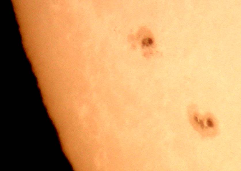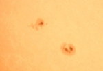 晴れ間は昨日だけ。今日は、うす曇り。光球が見えるので撮影です。条件は悪いけれども、シーイングは悪くなさそうだ。高速シャッターは切れないが、拡大撮影でもそれなりに写る。インターネットの情報では、太陽は現在活発に活動との事。これらの黒点群。11月5日の観望会まで最低でもこのレベルで推移して欲しい。あわよくば、今後も暫く活発に活動するとの事なので、巨大黒点に発達して欲しい。