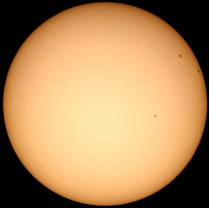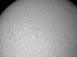 フルディスクのみ撮影。シーイングは良くなく、拡大撮影は中止。西没前の黒点群が成長しだしました。どうして沈む前に成長しだすんだ。残念この上ないです。 |