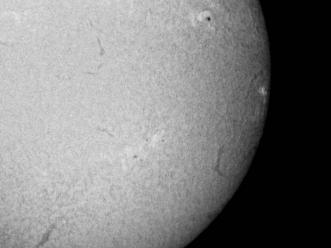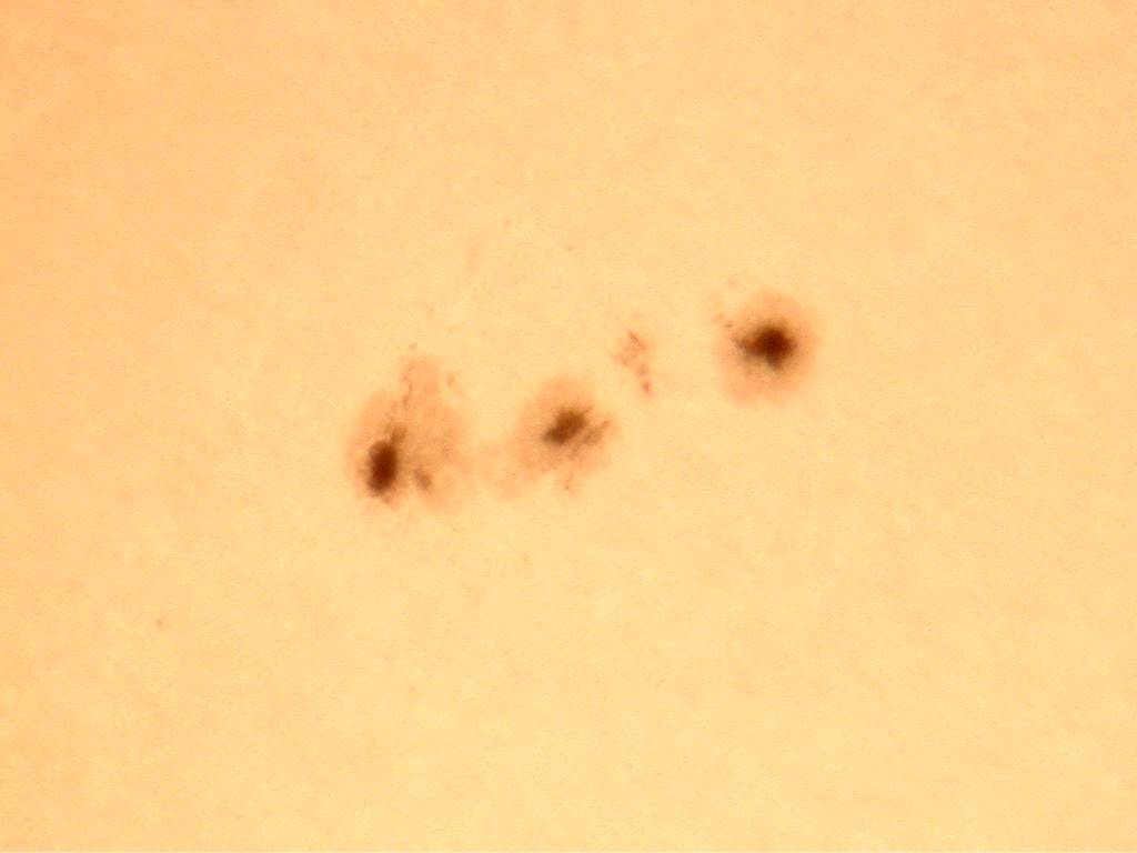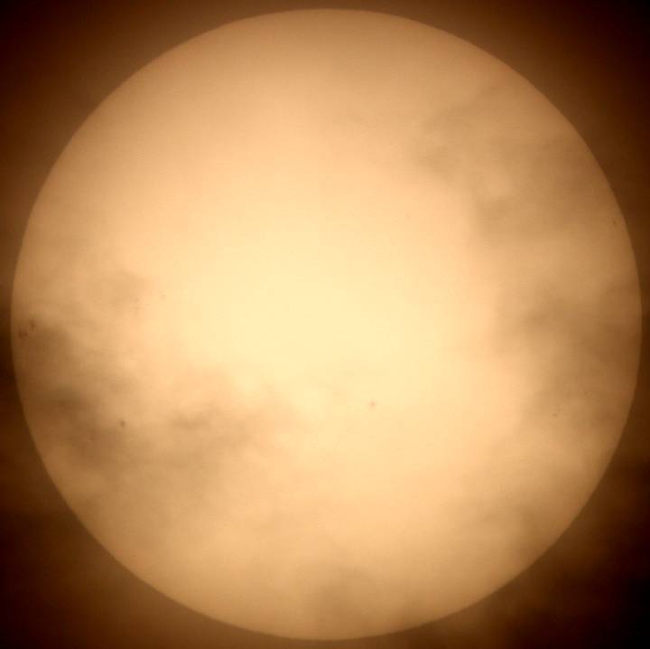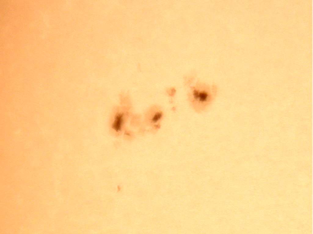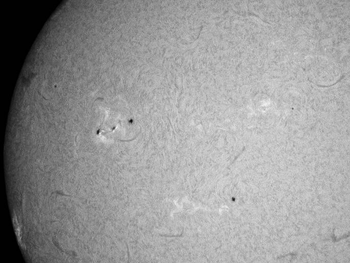 今日は、うす曇り。しかし、太陽面はさらに、東(画像左)に一群回って来ました。16日に回ってきた群と合わせて監視して行きましょう。 |