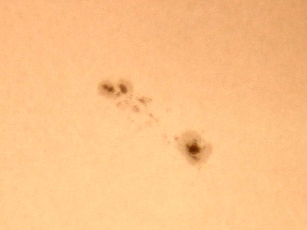 また中1日置いての観察です。しかしまたまた覗いてビックリ撮ってビックリ。まず、6日に予想していたメインの群の左の群ですが、急成長しました。メインの群も更に成長しています。目が悪いので肉眼では見えませんでしたが、恐らく肉眼黒点でしょう。ダークホースだった群も西のエッジですが、存在をアピールしています。結構大きくなっている可能性大です。