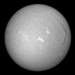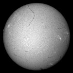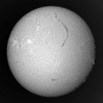 今月に入り始めての連続観察です。可視光の画像も昨日の画像よりは良く、西没前のメインの群がハッキリと見てとれます。今回東から登った群は、まだ微小黒点の集まりですが、今後はこの群をメインに据えてチェックして行きましょう。このエリアはHαでもプラージもしっかりと見えて有望?です。長いフィラメントは今日も健在です。画像左のエッジの部分ですが、フィラメントとプラージが写ったエリアがあります。このエリアは明日にはもう少し詳細が解ると思いますが、ダークホースにしておきましょう。 |