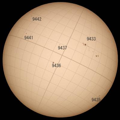 可視光ですが、9433は昨日のコピーのように衰退もせず現状維持です。東に9441と9442の2群が確認出来ます。