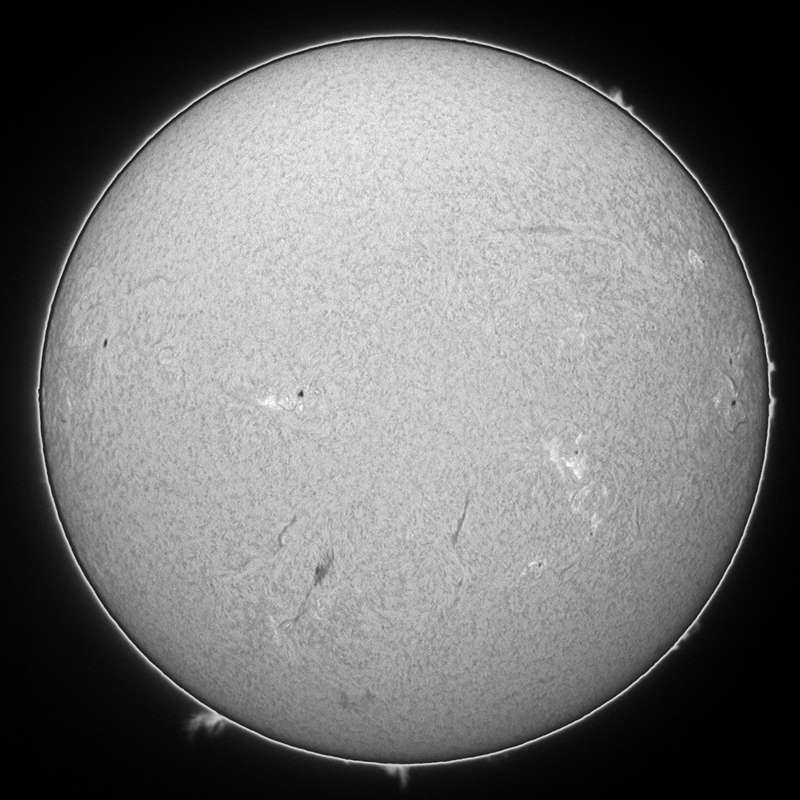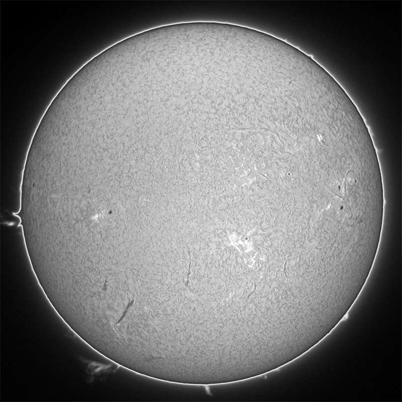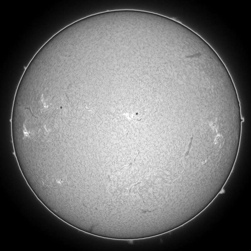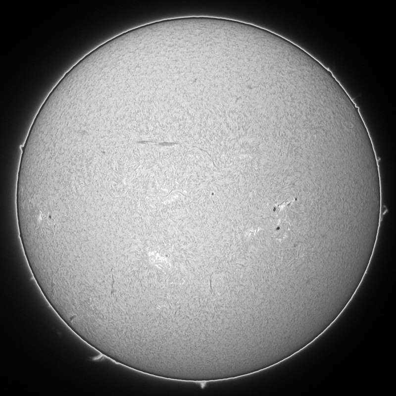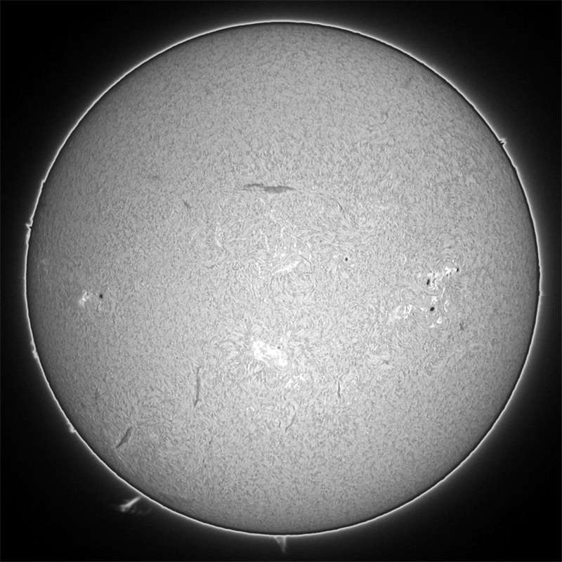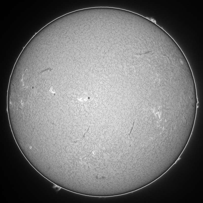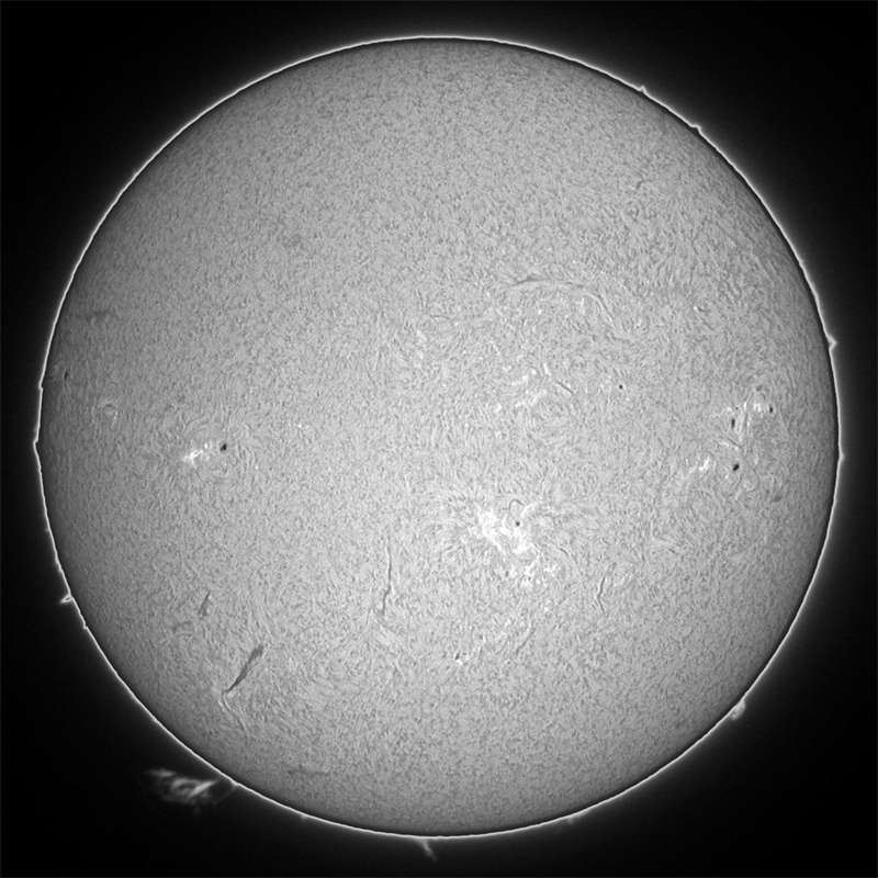 先日から吹いていたプロミネンスはピークが過ぎ、小さくなっています。動的プロミネンスが発生していたエリアはHαで微小黒点が観察出来ます。今後このエリアも要注意です。 |