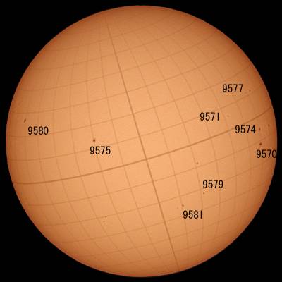 9575群はHαではお供の黒点が見えているのですが可視光では確認出来ず。明日に期待しましょう。 |