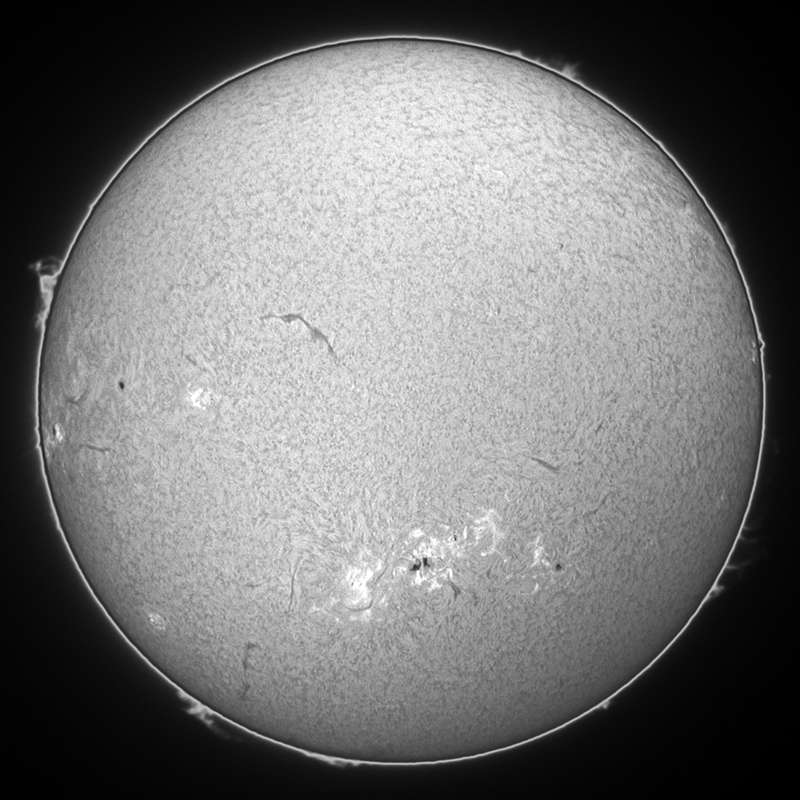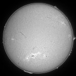 東から昇った9600・9601群。想像以上に奥行きがあるので、そこそこ大きいかも?9591群は可視光では若干衰退傾向が見られますが、Hαでは眼を楽しませてくれます。とても美しい群です。東出した9600・9601エリアもHαで見る限り活動領域を伴っているので、今後要注意です。 |