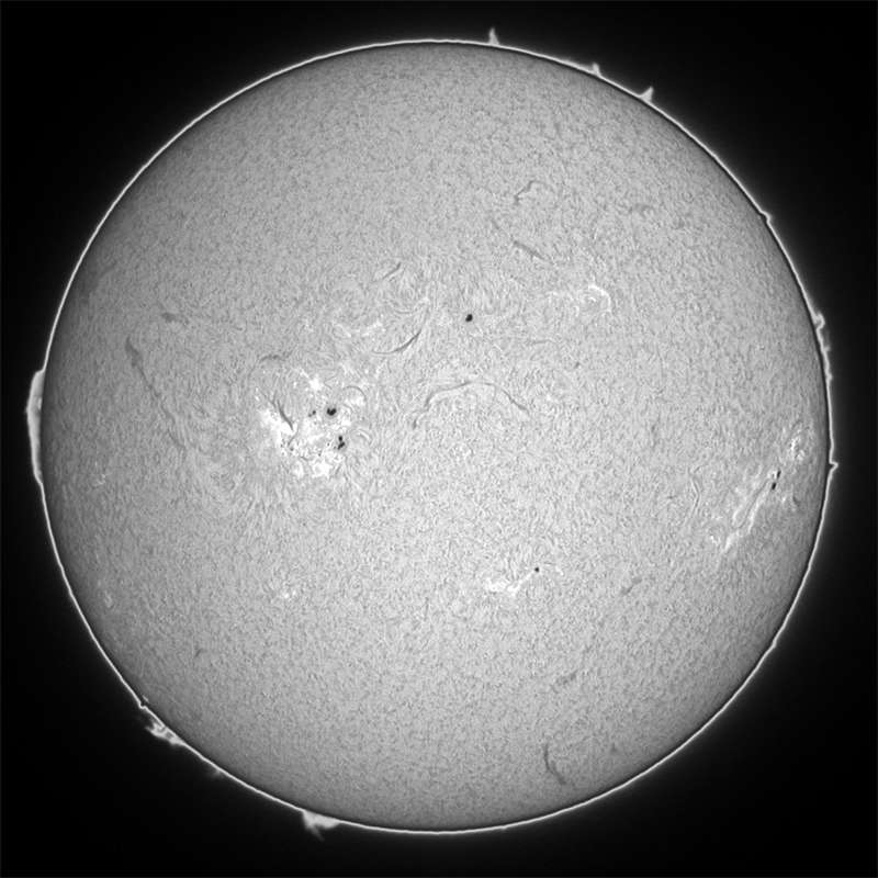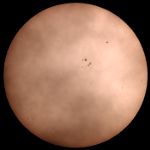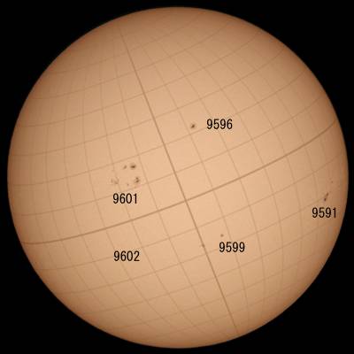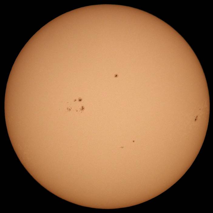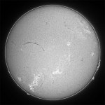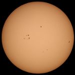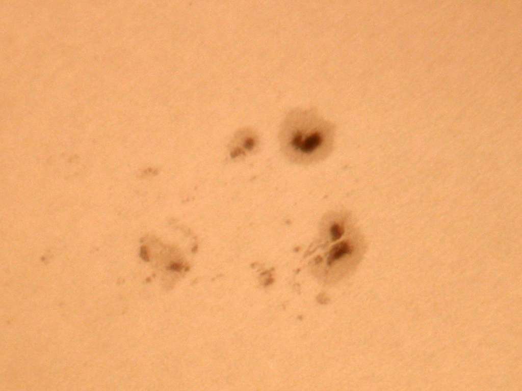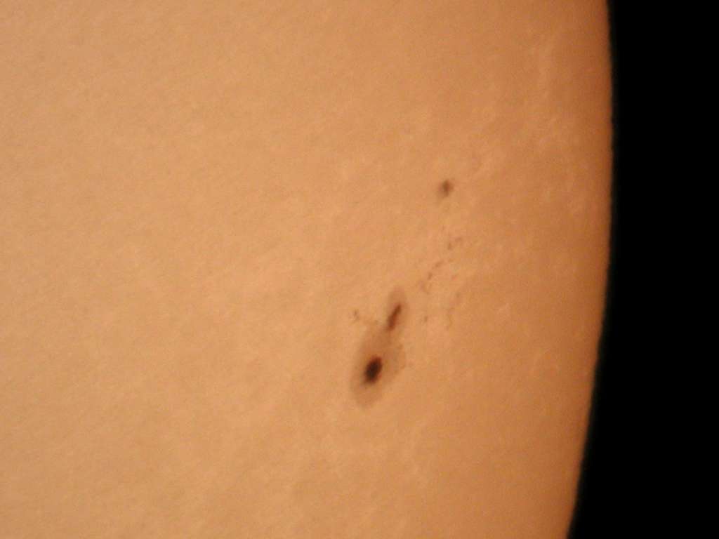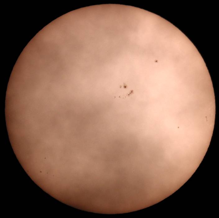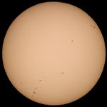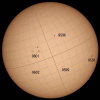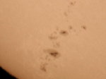 | デジカメ太陽シリーズ 巨大黒点を追え328 天気が最低だ。コメントも控えようと思ったが、画像の東に群が昇ってくる気配が。今後の動向が気にかかる。 |