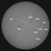 悪天候の合間、辛うじて可視光を撮影。ボケボケの画像ですが、9906群の真中の黒点が急成長。もう少し良像が欲しかった。しかし、ピークはまだ過ぎていないのかも…。
