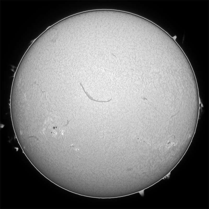 朝からビッグイベントです。0017群がXクラスフレアを起こしました。昼休みが定時に取れていたら、フレア後半を撮影出来たかも…。でも、その頃は曇っていたし…。因みに、仕事の都合でお昼が13時からだったので左記画像のタイムスタンプは13時台です。大きな黒点が減り、寂しい太陽面ですが、まだまだ要注意です。それと、昨日から、太陽東面に面白いプロミネンスが出ています。この領域も気になります。しかし、残念ながら南海上の台風の影響で、明日以降の観測は壊滅的?