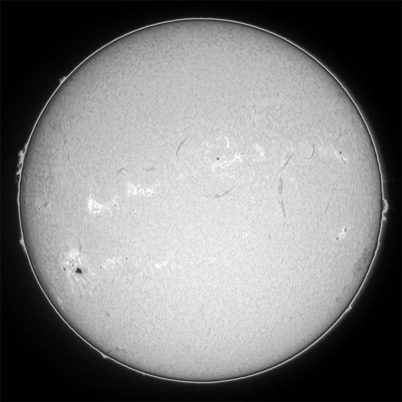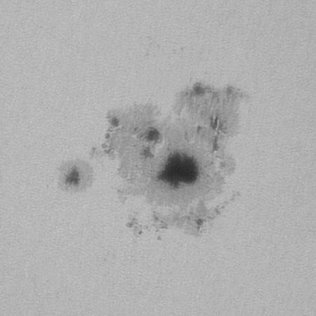 待ってました。このシーイング。久しぶりのスポット撮影。前回の西没前よりデカイ。黒点面積も前回のピーク時を凌ぐ値が報告されている。「?」。別群?同じ群?どちらにしても大黒点。楽しみ楽しみ。でも、前周で派手な活動をしたエリア。エネルギー残っているの?