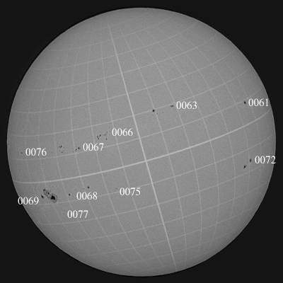 0069群。デガラシ?と思いきや、イキナリMクラスフレアでご挨拶。期待以上に楽しませてくれそう?太陽面では0069群ばかりに目に付きますが、0066群、0067群も小さいながら活発そうです。0067群に注目していたのですが、先に0066群がMクラスフレアを起こしました。この3群を中心に今後も継続観察していきましょう。