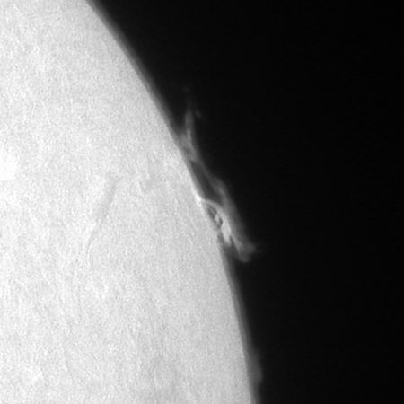 今日はシーイングが良かった。76mm口径の屈折でも粒状斑が辛うじて写る。90mm口径ではどうだろうか?興味があったので撮影してみた。結果は下記の通り。たった14mmの差でここまで違うのか…。焦点距離が100mm程短いので、拡大率が違うが、それにしても凄い。太陽用には勿体無い筒なので、常時使用するつもりは無いが、ここまで写ると考えてしまう。昼の部はHαでサージプロミネンスらしき現象を確認。昼はシーイングが悪く、コマ写真に出来なかったのが残念。