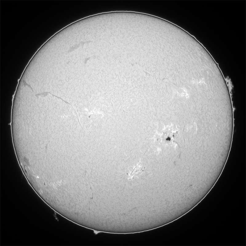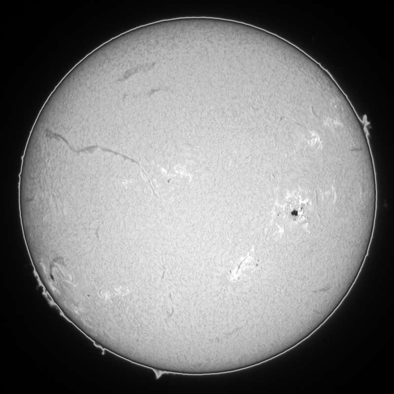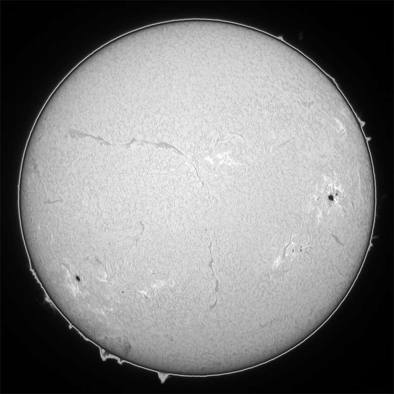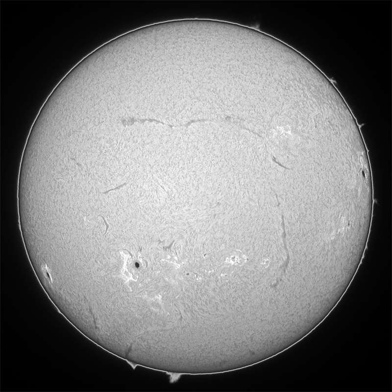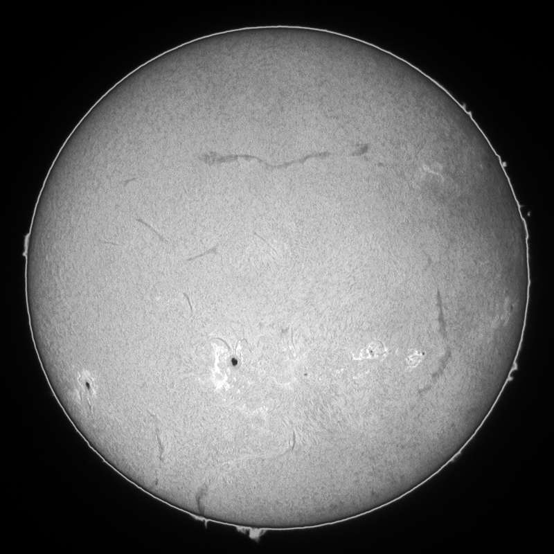 0069群が活発です。可視ではピークを迎えたのか、昨日の画像とほぼ同じです。今日も強風が吹き荒れシーイングが最悪。可視光スポット撮影は、大量撮影し、良像のみをコンポジットして仕上げました。結構見れます。ここ連日、毎日500枚近く撮影している。それ位撮らないと、良い画像が得られない。冬型みたいな西高東低の気圧配置は何時まで続くのか…。昨日期待していた0085群ですが、裏面で燃え尽きたか…。カナリ衰退しているようだ。残念だ。