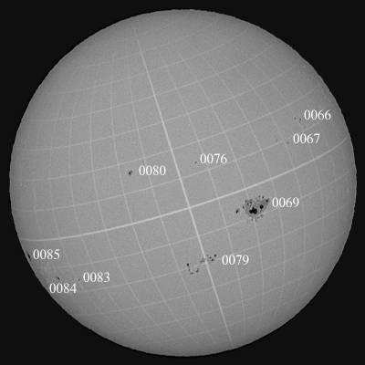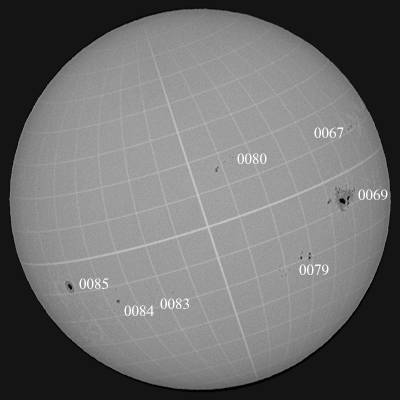 快晴。なんと良い響きなんだろう…。朝からスキッと晴れ渡りました。シーイングは良くも無く悪くも無くと言ったところでしょうか…。さて、0069群は西没モードです。24日頃には裏面に回るでしょう。残念です。次回、何らかの形で東出するとは思いますが、大きくなって帰ってきる事は無いと思われます。その他では、007群が久しぶりにフレアを起こしました。