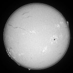 朝から曇天。雲間の一瞬で撮影。辛うじて画像に…。その後降雨。今日は駄目か?お昼前にXクラスフレア発生。でも雨…。お昼休みが終わって、午後2時頃から晴天に…。何と言う天気だ。夕方から再度雨。踏んだり蹴ったりの天気でした。でも、朝の一瞬の雲間で撮影しておいて良かった。