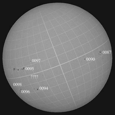 0095群の衰退は顕著になってきましたが、0096・0097群は、ゆっくりですが成長しています。ここ数日の太陽は、目立ったフレアも無く、不気味です。そして何よりも、大黒点の回帰が確認出来ません。嵐の前の静けさなのか、ただ単に不活発なだけなのか…。 |