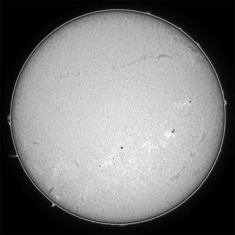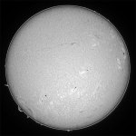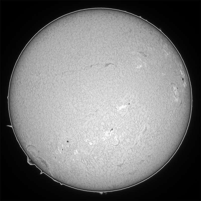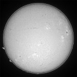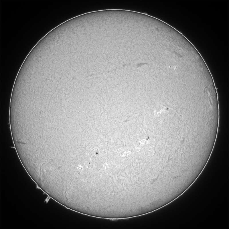 祝600回にリーチ。そして、久しぶりにフレア。0114群ですが、可視で見た感じでは、昨日と同じか若干衰退?でも、Hαでは、まだまだ現役ですね。ただ、残念な事に0103群は顕著に衰退しました。Hαで見ても、衰退は顕著です。残念です。それにしても今日は天気が悪かった。晴れたり降ったり…。勿論シーイングも最悪。可視もフニャフニャ。ただ、Hαを4セット撮ったのですが、奇跡の1セットがあり、辛うじて画像化出来ました。曇る直前の10カット程にシーイングが止まった画像があったのです。ラッキーでした。