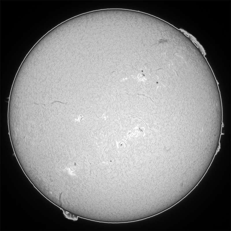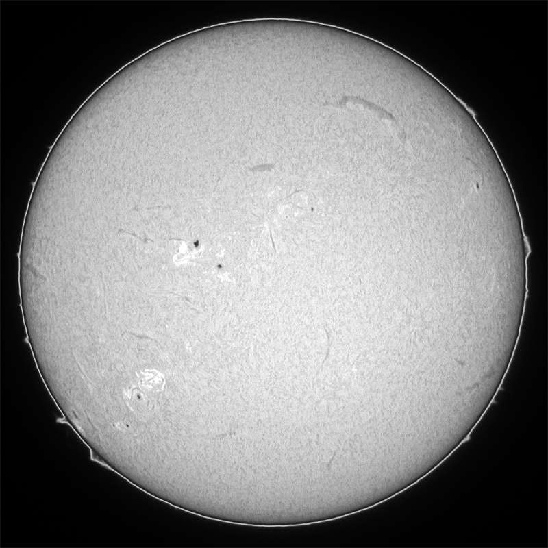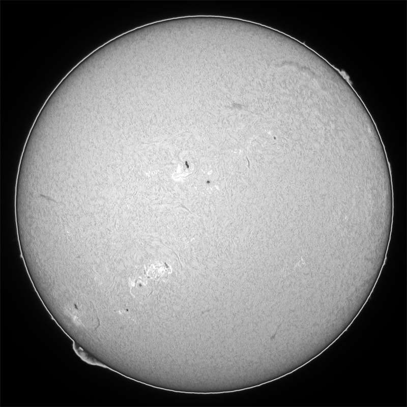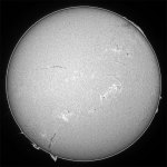 0188群と思われる群ですが、可視レベルでは成長を確認出来ますが、一時の勢いは無く、おそらくピークを迎えたものと思われます。Hαで見ても、昨日と違い、元気がありません。やはり短期集中型の群でした。今後目立った活動は無いものと思われます。って書けばカッコいいが、内心、当たった当たった!ハッタリが当たった!ってところでしょうか…。それにしても、今日はシーイングが恐ろしく良かった。この時期、偏西風が入り、悪い日が多いのですが…。Hαはクリーンヒットの画像です。 |