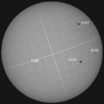 ここまでくると、冬のシーイングでは無いですね。今日も恐ろしい程の好シーイング。鳥肌が立ちますね。こんな日に大きな黒点があれば、申し分ないのですが…。因みに南半球にある東出していた群ですが、おそらく0207群でしょう。ロケーションは300です。ロケーション200のエリアまで、あと一週間弱ですね。前周の活動エリア。どうなっているでしょうか?唯一の楽しみ? |
