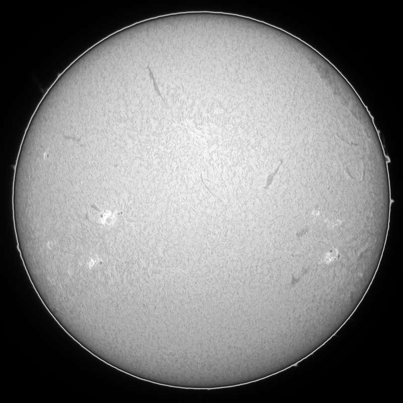 0242群は、ピークを過ぎた様子。0247群は可視で引き続き成長が確認出来ます。0251群は、イマイチ詳細が不明。昨日までとは違い、シーイングもやや悪?でも、冬にしては良いほうですが…。主なフレアは本日は無し?ここ2〜3日の中では比較的大人しい太陽?でした。 |