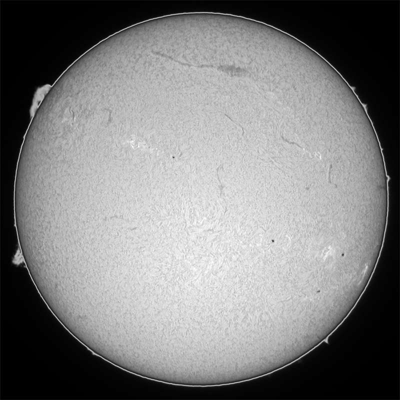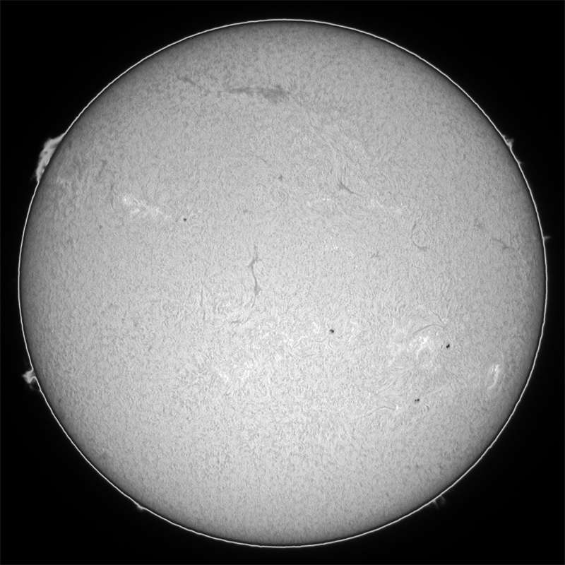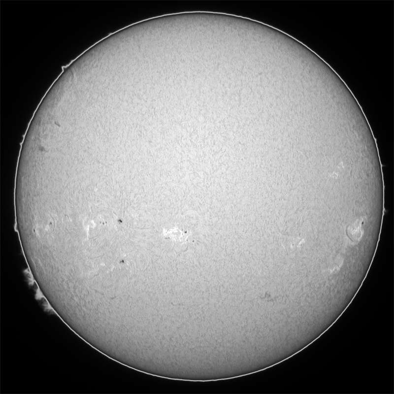 今日も昨日に引き続き、シーイングが良かった。Hαもそこそこ良像が得られています。ただ、各黒点群が小さい事に変わりはありません。寂しいですね。それにしても、今年の冬は、昨年までに比べて寒い!ただ、意外にシーイングの良い日が多い。ふにゃふにゃお手上げ状態には、まだ数度しか遭遇していない。偏西風が近畿上空を迂回しているのか?実際のところは不明だが、太陽を観察している者にとってはありがたい事だ。 |