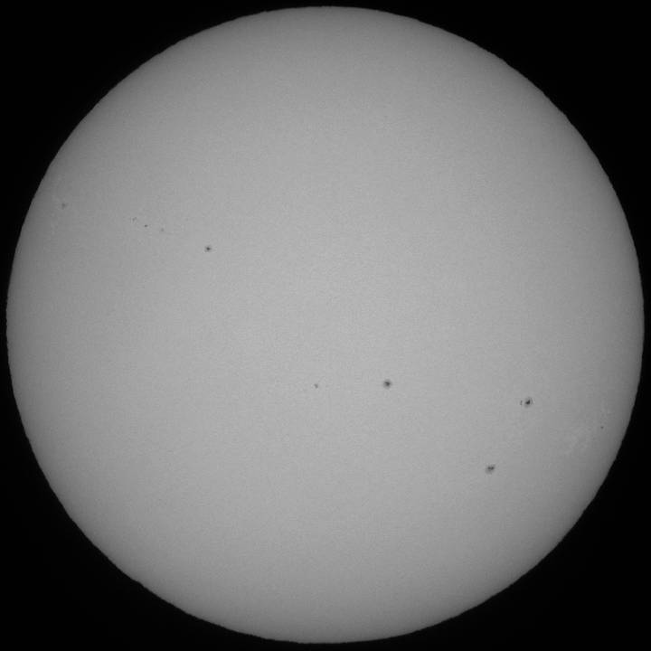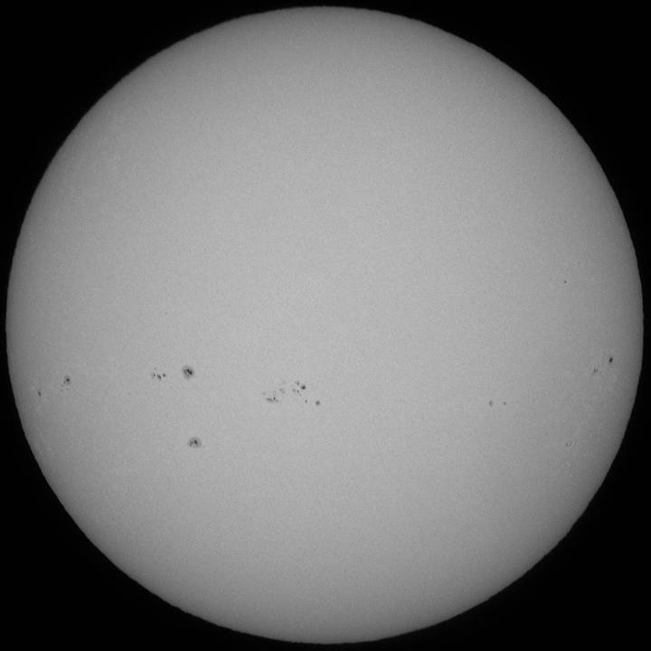 現在、南半球に黒点群が集中。ただ、各群昨日と比べると、若干衰退?本日午後から鳥取遠征。日本海側の天気は壊滅的だろうな〜。でも、一応撮影機材一式は車に積んである。チャンスがあれば是非撮影をしたい…。無理かな? |