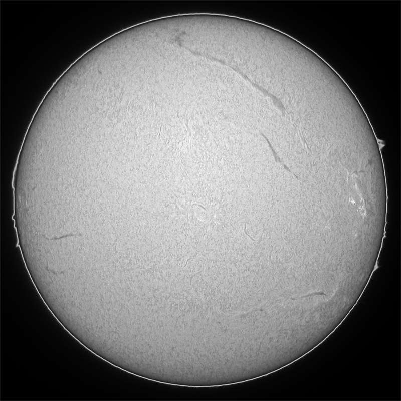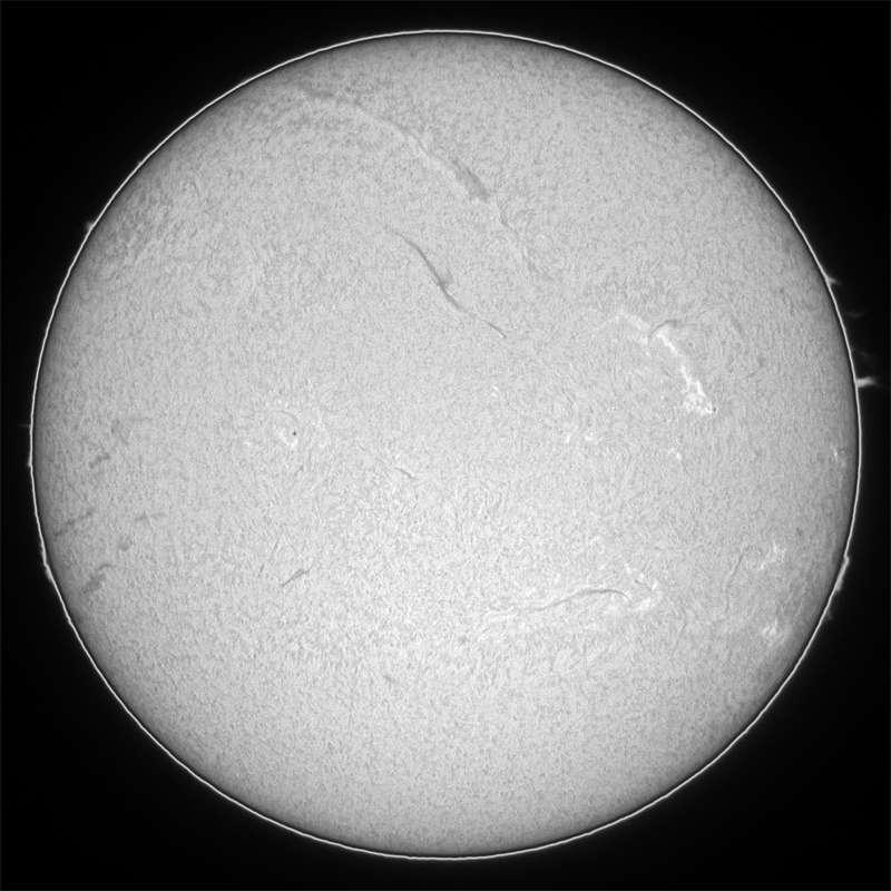 いやはや、何と見事なフィラメントだろう。こんなフィラメントがペロンとめくれるとすごいプロミネンスになるのですが…。黒点はイマイチですが、このフィラメントは一級品ですね。そして今日のシーイングも一級品?本当に冬?