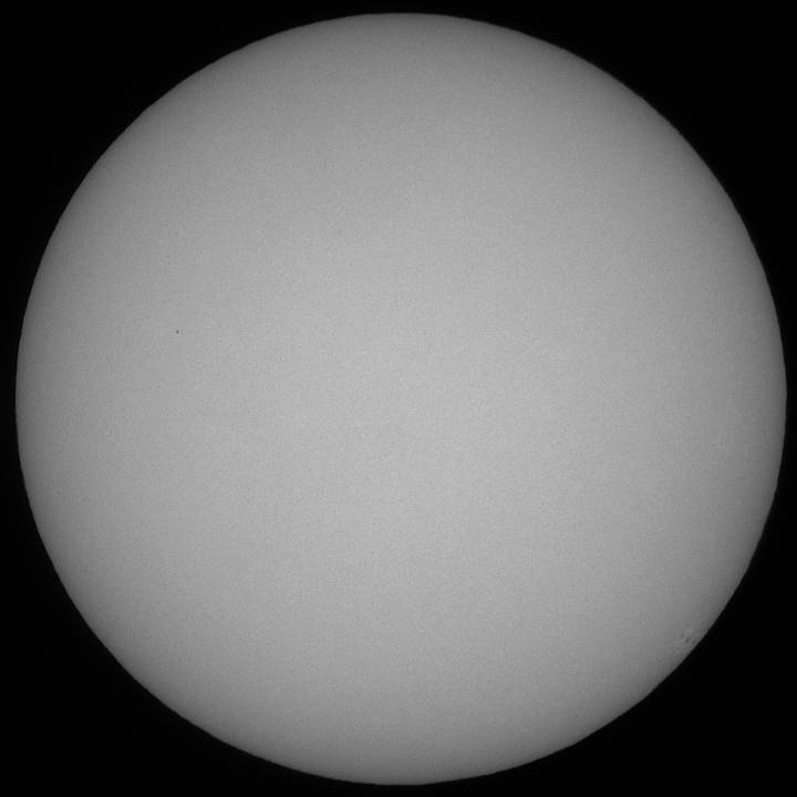 参りました。パッと見は無黒点?でも、画像をクリックして下さい。黒点はあります。一応…。でも、可視だけでは寂しい太陽面ですが、Hαは辛うじて楽しめそう?フィラメントもあるし…。北半球には活動領域の名残もあるし…。でも寂しい…。 |