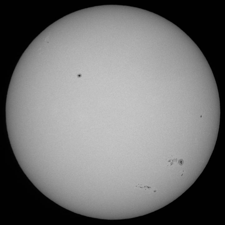 水星の日面通過から中一日。主な活動領域が西に沈み、目立った黒点が殆ど無い太陽面です。大黒点、水星日面通過とお祭が終わると、急に、例のやつが頭を過ぎる。「無黒点」。このまま無黒点に近づくのか、賑やかな領域が再度東出するのか…。微妙…。 |