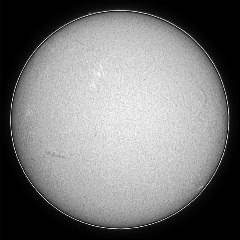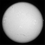 ????群を含め、もう一群東出し、辛うじて無黒点状態を免れている太陽面です。天候もイマイチすっきりしません。Hαも雲が薄い時の画像を8枚合成して、辛うじて見れるレベルです。ただ唯一の救いは、シーイングが良い事です。普通なら諦めます。 |