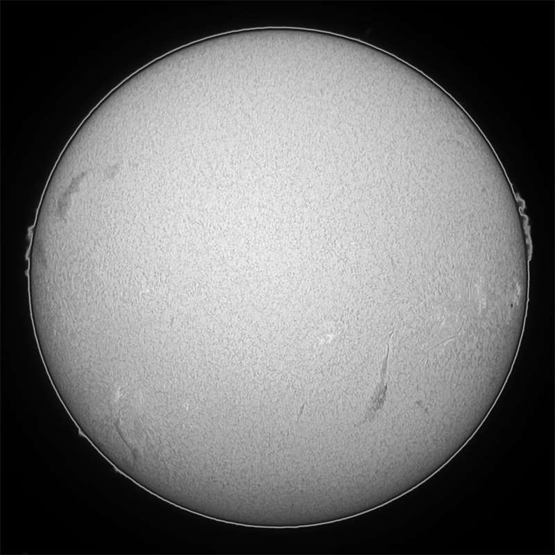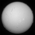 南半球、子午線より東に小さいですが黒点が発生しているようです。これまた小さいですがプラージュもあります。同じ?活動領域からフィラメントも延びています。さて、今後どうなるの?かな? |
