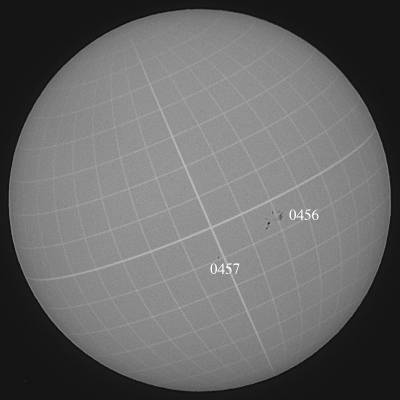 秋雨の走り?天候がイマイチ冴えません。でも、太陽面には変化が…。南半球に発生した群は、9日よりも成長しています。楽しみ?でも、最近の群は大きく育たない事が多いので、期待薄? |