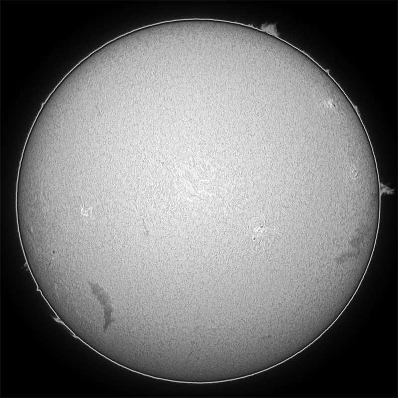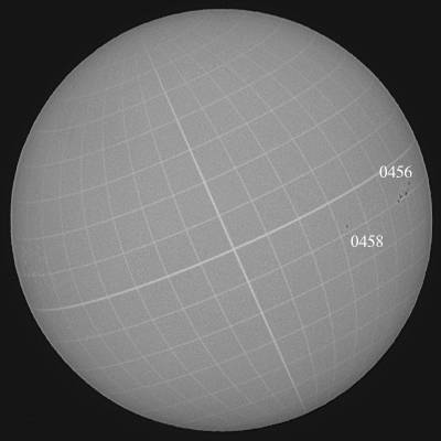 0461群ですが、成長を見極めるよりも早く、西没モード。残念です。しかし、全体的には微小黒点ながら、点在する各黒点のサイズは先日までに比べて大きい?ようで…。プラージュを伴っている群もあり、少し明るい材料があるかな? |