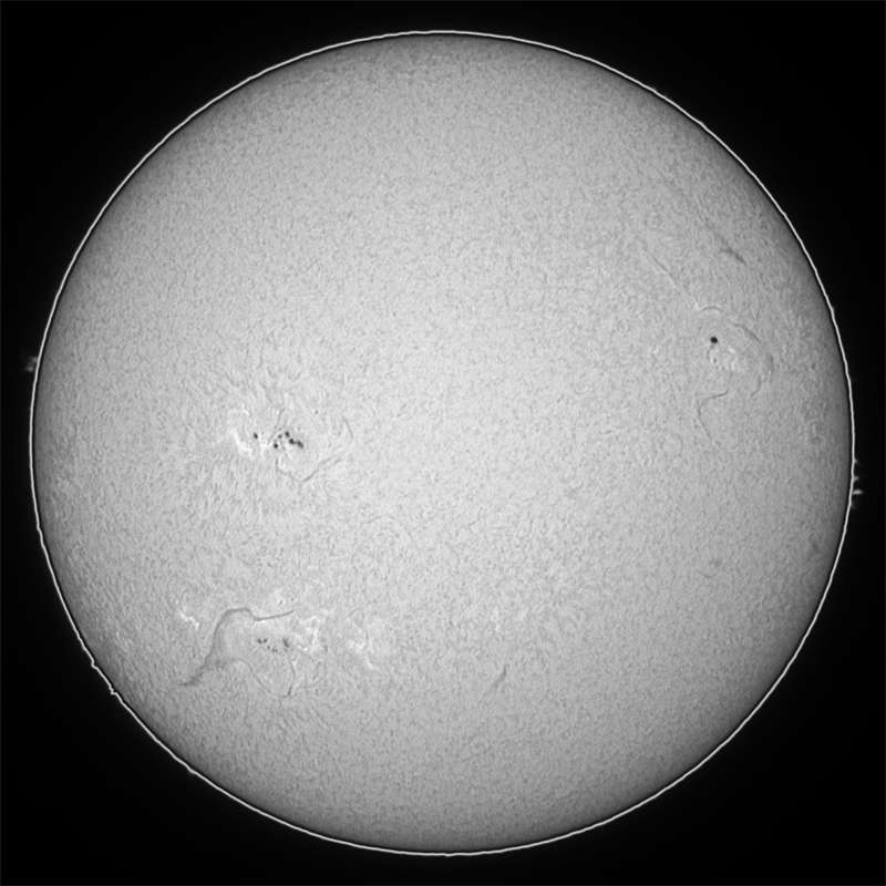 日曜日。Hαスポット撮影システムのテスト第3回です。今回もDV1394で直接キャプチャーしてみました。シーイングも100点満点ではありませんが、この時期としては先ず先ずでしょうか。ただ、残念な事にパッタリとフレアが途絶えてしまい、この一連も活動も終止符が打たれる時期が近づいたかな?と想像されます。 |