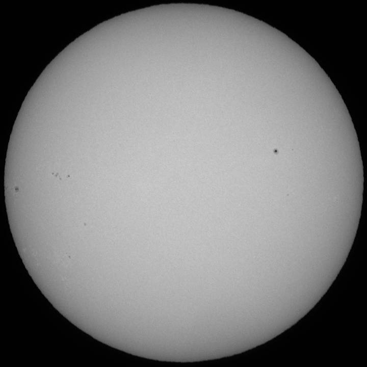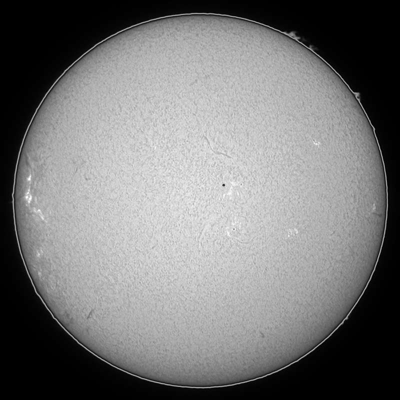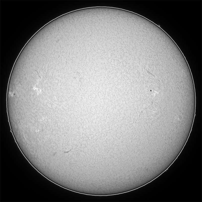 興味のあるエリアが回帰してきました。先日の巨大黒点エリアです。南の方は微小黒点2群を残すのみとなりました。北の方は殆ど黒点の存在を確認出来ませんが、フレアを起こしています。ただ然程大きなフレアでは無かったようです。実は撮影中、気付きませんでした。 |