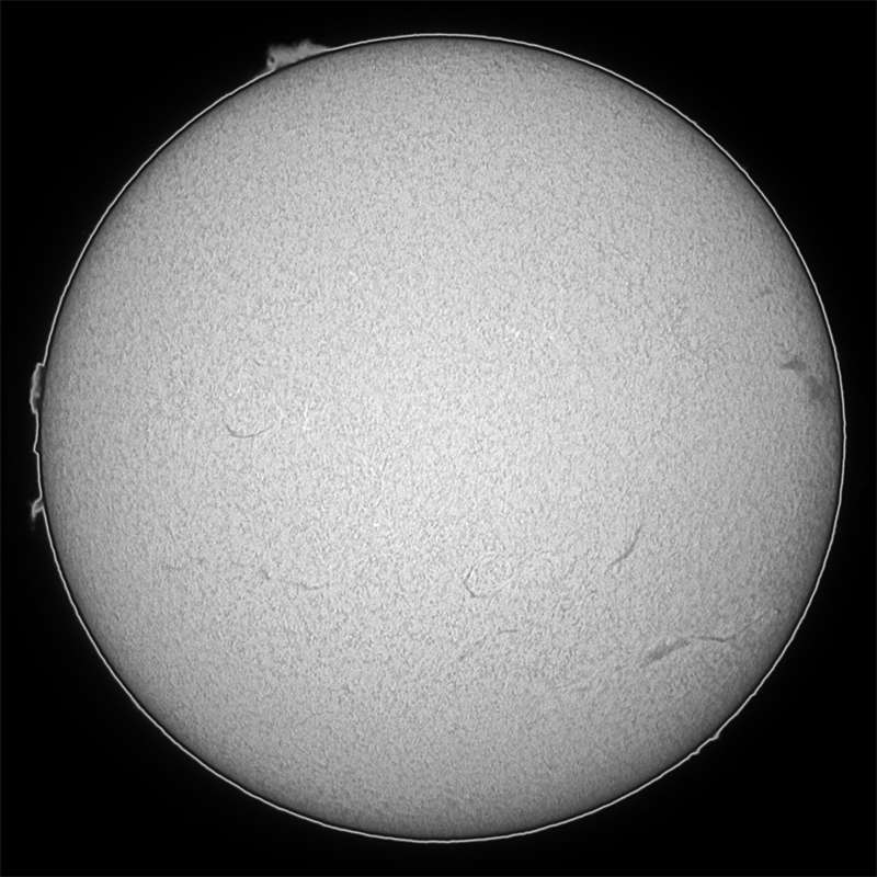 無黒点…。北も南も東も西もあったもんじゃない。あっ、でもHαだけは一応模様があるので、暴言でした。撤回します。でも寂しい…。 |
