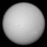 | デジカメ太陽シリーズ 巨大黒点を追え972 朝から雨。ドシャブリ…。私の天気予報では、午後遅く近畿北部で晴れ間が出ると読んでいますが、天気予報では厳しそう。確実に晴れそうなのは、木更津から銚子にかけてか…。う〜ん。北海道は無理だが、木更津なら道が繋がっている。朝6時30分、自宅を出発。関ヶ原・浜名湖を過ぎても雨。こりゃダメか?しかし、静岡に入ると雲間から太陽が…。ネットで情報を集めながら更に北上。神奈川県境で再度雨。しかし、横浜近辺まで来ると、晴れ間が…。問題は、この晴れがいつまで続くかだ…。前線は確実に北西から降りてくる。天気はもつのか?途中首都高で道を間違え、木更津でタイムオーバー。出来れば銚子まで行きたかったが…。安全な場所を探して、車を停車し、準備開始。第一接触まで10分。何とか準備完了。しかし、ヘリコプターが多い?何で?後で確認したがどうやら木更津駐屯地の近くだったようだ。もし、望遠鏡が駐屯地方向に向いていれば攻撃されたかもしれない。冷汗ものだった…。兎に角、準備完了。時々うす雲が通るが、第一接触開始。確認後、拡大に切り替えて撮影続行。しかし、徐々に雲が…。辛うじて第二接触を観察。ブラックドロップは確認出来なかったが結果オーライだ。シーイングが良すぎたのだろう。兎に角撤収だ。結局この30分間の為に往復14時間車を運転しました。 |